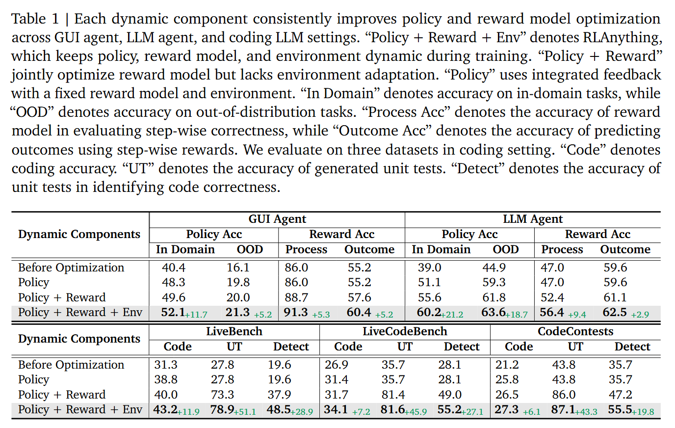 In real-world applications, an agent must interact with the environment iteratively, often producing long trajectories. In this setting, step-wise signals are especially important. Beyond high-quality reward modeling, task difficulty is known to affect an agent’s learning efficiency. We introduce RLAnything, a fully dynamic RL system that tightly couples the environment, policy, and reward model by having them provide feedback to one another, strengthening learning signals and improving overall performance. We conduct extensive experiments across GUI agent, LLM agent, and coding LLM settings. See details in our paper and repository.